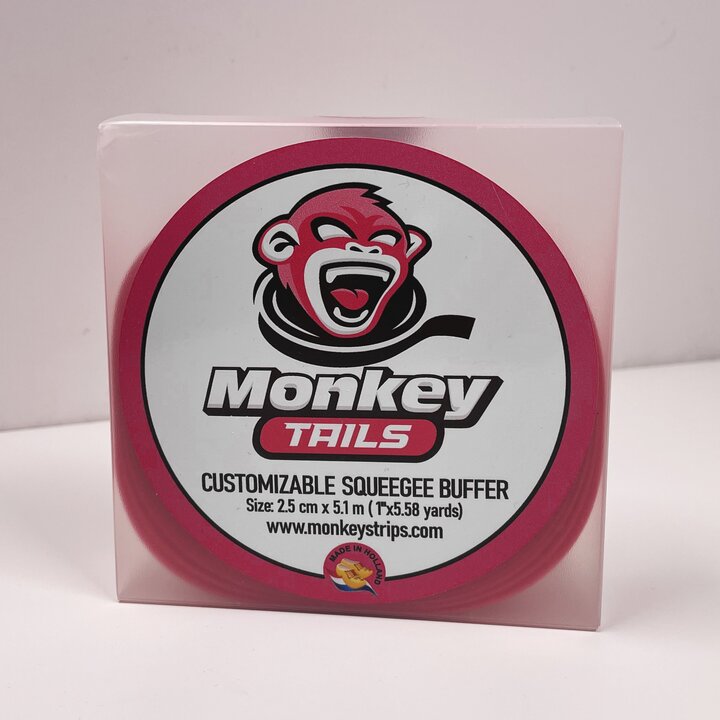 Monkey Tails er laget av samme tynne, myke, holdbare filt som Monkey Strips, bare på rull. Monkey Tails er en lang rull som lar installatører lage en tilpasset buffer for enhver størrelse squeegee. Dette gir installatørene muligheten til å velge en profesjonell buffer for alle typer applikasjoner som vegger, gulv, vinduer, lastebiler og mer.