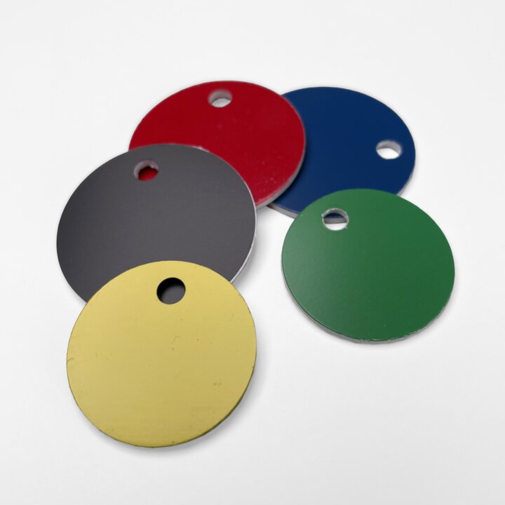 Runde brikker av plastlaminat 3 lag.