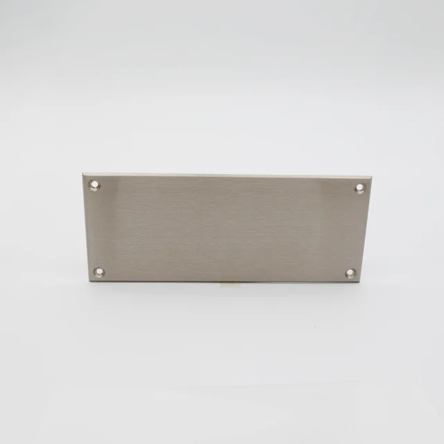 Rektangulært dørskilt i messing. Tilgjengelig med eller uten hull og i flere ulike utførelser. Størrelse 170x70 mm.