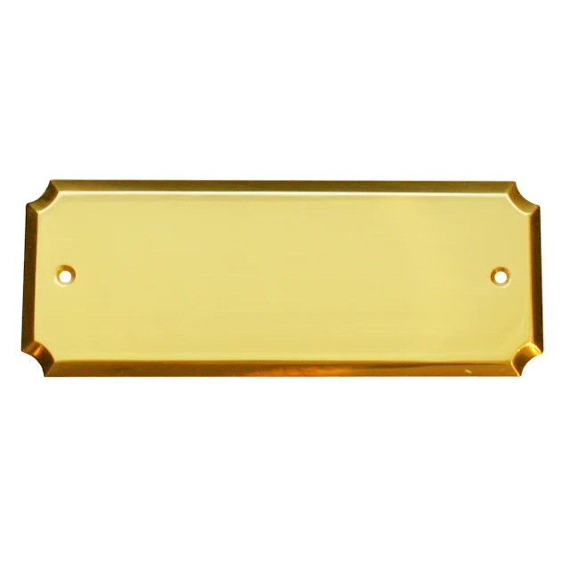 Rektangulært dørskilt i polert messing. Skiltet har en fin avfaset kant med konkave hjørner. Størrelse 155x60 mm.